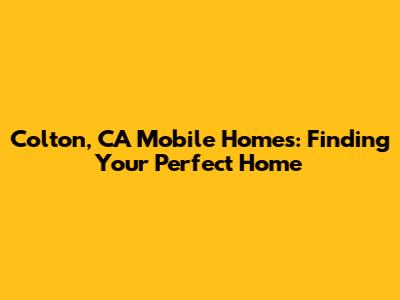 Colton, CA Mobile Homes: Your Dream Home Awaits!