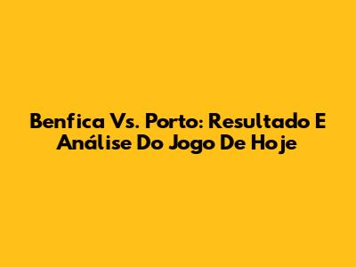 Benfica Vs. Porto: Resultado E Análise Do Jogo De Hoje