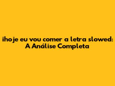 Ihoje Eu Vou Comer A Letra Slowed: A Análise Completa