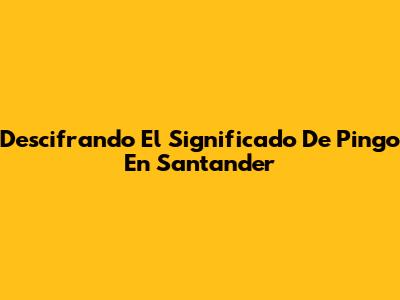 Descifrando El Significado De 'Pingo' En Santander