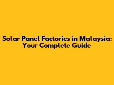 Solar Panel Factories In Malaysia: Your Complete Guide